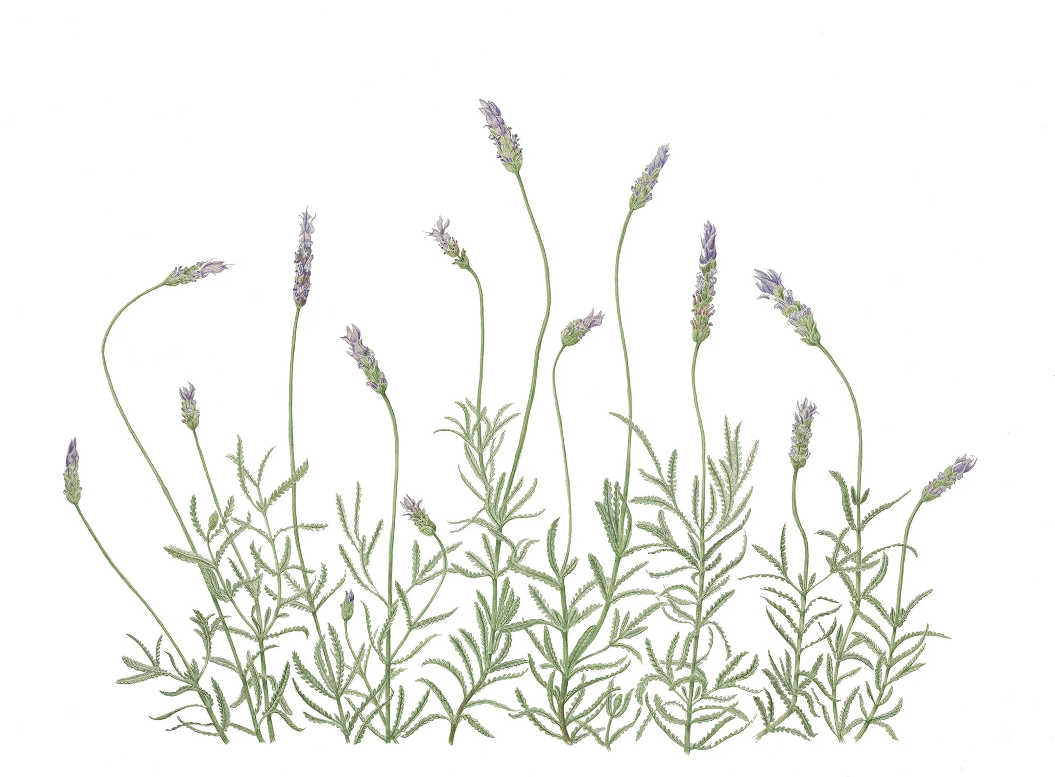 This painting was commissioned for a very special friend by her wonderful husband. Lavender is a special plant which they planted for their wedding and which has always been in their garden. This friend is an elegant dancer who has always loved ballet and we worked together to establish a them of ‘dancing energy’.